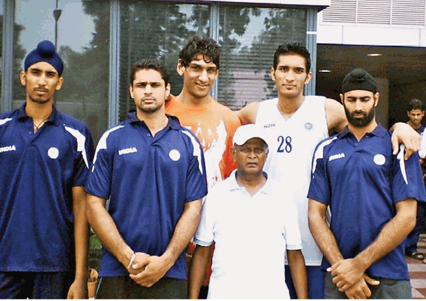 Dr Subramanian with his five best players produced by him Amjyot Singh Gill,Jagdeep Bains, Satnam Singh, Amrit Mann and Yadwinder Singh. All five won Arjuna awards.